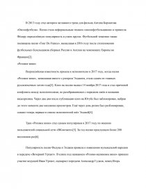 В 2013 году стал автором заглавного трека для фильма Антона Борматова «Околофутбола». Песня стала неформальным