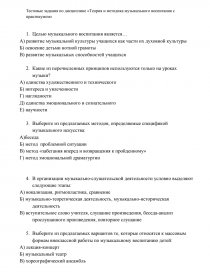 Тестовые задания по дисциплине «Теория и методика музыкального воспитания с практикумом»