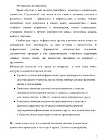 - В рамках студенческой неформальной группы формируются личностные качества каждого участника, так же группа помогает успешно разрешить кризис в этом возрасте;