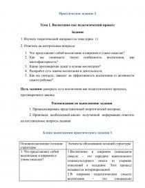 Цель задания: раскрыть суть воспитания как педагогического процесса, противоречия и законы