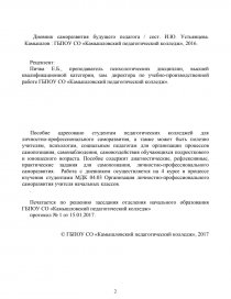 Дневник саморазвития будущего педагога / сост. И.Ю. Устьянцева. Камышлов : ГБПОУ СО «Камышловский педагогический колледж», 2016.