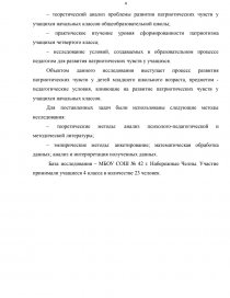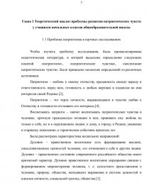 Введение …………………………………………………………………….… Глава 1 Теоретический анализ проблемы развития патриотических чувств у учащихся начальных классов общеобразовательной школы …………..…. 1.1 Проблема патриотизма в научных исследованиях ………………….... 1.2 Развитие патриотических чувств в младшем школьном возрасте ……… Глава 2 Эмпирическое исследование патриотических чувств учащихся четвертого класса …………………………………………………………….. 2.1 Исследование патриотических чувств учащихся……………………….. 2.2 Исследование условий и методов, используемых учителем для развития патриотических чувств учащихся четвертого класса.…………………….. Заключение…………………………………………………………………….. Список использованных источников ……………………………………...… Приложение А (справочное) Диагностическая методика «Я – патриот»….. Приложение Б (справочное) Результаты диагностических исследований … | 3 5 5 9 13 13 15 17 18 19 20 |