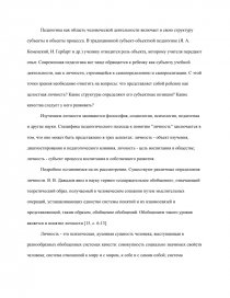 Педагогика как область человеческой деятельности включает в свою структуру субъекты и объекты процесса. В традиционной субъект-объектной педагогике (Я. А. Коменский, И. Гербарт и др.) ученику отводится роль объекта, которому учителя передают опыт. Современная педагогика все чаще обращается к ребенку как субъекту учебной деятельности, как к личности, стремящейся к самоопределению и самореализации. С этой точки зрения необходимо ответить на вопросы: что представляет собой ребенок как целостная личность? Какие структуры определяют его субъектные позиции? Какие качества следует у него развивать?