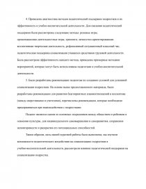 4) провести диагностику методов и эффективности педагогической поддержки подростков в учебно-воспитательной деятельности;