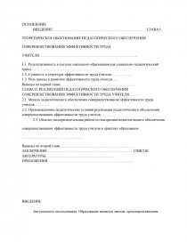ВВЕДЕНИЕ…………………………………………………………………. ГЛАВА I. ТЕОРЕТИЧЕСКОЕ ОБОСНОВАНИЕ ПЕДАГОГИЧЕСКОГО ОБЕСПЕЧЕНИЯ СОВЕРШЕНСТВОВАНИЯ ЭФФЕКТИВНОСТИ ТРУДА УЧИТЕЛЯ……….……………………………………………………………..