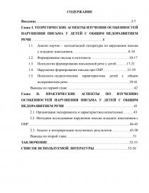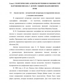 Глава I. ТЕОРЕТИЧЕСКИЕ АСПЕКТЫ ИЗУЧЕНИЯ ОСОБЕННОСТЕЙ НАРУШЕНИЯ ПИСЬМА У ДЕТЕЙ С ОБЩИМ НЕДОРАЗВИТИЕМ РЕЧИ …………………………………………………….8
