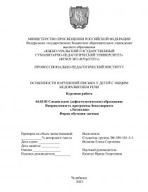 ОСОБЕННОСТИ НАРУШЕНИЙ ПИСЬМА У ДЕТЕЙ С ОБЩИМ НЕДОРАЗВИТИЕМ РЕЧИ