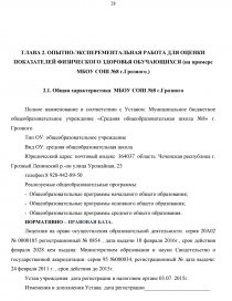 ГЛАВА 2. ОПЫТНО-ЭКСПЕРЕМЕНТАЛЬНАЯ РАБОТА ДЛЯ ОЦЕНКИ ПОКАЗАТЕЛЕЙ ФИЗИЧЕСКОГО ЗДОРОВЬЯ ОБУЧАЮЩИХСЯ (на примере МБОУ СОШ №8 г. Грозного).……………………………………………29
