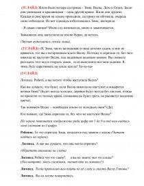 (1СЛАЙД) Жили-были четыре сестрицы – Зима, Весна, Лето и Осень. Были они умницами и красавицами – одна другой краше. Жили они дружно. Каждая в своё время на землю приходила, сестрицу не обгоняла, очередь свою соблюдала. Но вот однажды взбунтовалась Зима, заспорила: