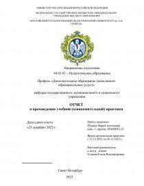 Дата сдачи отчета «23 декабря» 2022 г. | Работу выполнил: Пунина Мария Антоновна курс: 1; группа: ПО(МОУ)-21 Время прохождения практики с 12.12.2022 по 28.12.2022 г. |