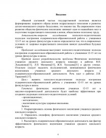 Краткий анализ разработанности проблемы: Физическое воспитание учащихся среднего школьного возраста показано в работах В.П. Лукьяненко[11], Л.П. Матвеева[13], Ж.К. Холодова[21] и других ученых. Отдельно следует выделить исследователей, занимающихся физическим воспитанием учащихся среднего школьного возраста в оздоровительно-образовательной деятельности. Речь идет о работах Л.И. Тарасовой [17].