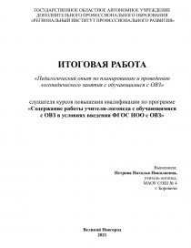 Педагогический опыт по планированию и проведению логопедического занятия с обучающимися с ОВЗ