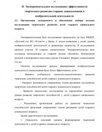 2.1 Организация эксперимента и обоснование выбора методик исследования творческого развития детей старшего дошкольного возраста 30