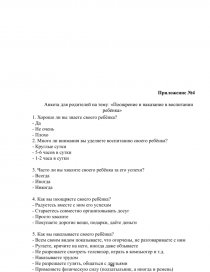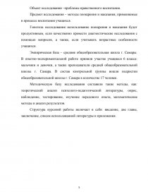 Введение……………………………………………………………………… Глава I. Теоретические аспекты поощрения и наказания в педагогическом процессе…………………………………………………… 1.1. История проблемы поощрения и наказания в воспитании детей…… 1.2. Классификация видов и форм поощрения и наказания………………. 1.3. Поощрение и наказание как средство педагогической коррекции….. 1.4 Проблемы нравственного воспитания в педагогике…………….……. Выводы по первой главе……………………………………………………. Глава II. Практическое исследование поощрения и наказания в образовательном учреждении……………………………………………… 2.1. Методика и методы исследования…………………………………….. 2.2. Анализ и интерпретация эмпирических данных……………………… Выводы по второй главе……………………………………………………. Заключение………………………………………………………………….. Список использованной литературы……………………………………….. Приложение………………………………………………………………….. | 3 6 6 9 14 14 20 21 21 23 30 32 34 37 |