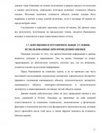 1.7 ДОПУЩЕНИЯ И ОГРАНИЧИТЕЛЬНЫЕ УСЛОВИЯ, ИСПОЛЬЗОВАННЫЕ ПРИ ПРОВЕДЕНИИ ОЦЕНКИ 9