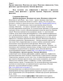 Цель изучения: дать информацию о фонетике и фонологии. Указать связь фонетики с другими науками. Определить значение фонетики.