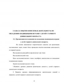 ГЛАВА II. ОПЫТНО-ПОИСКОВАЯ ДЕЯТЕЛЬНОСТЬ ПО ОВЛАДЕНИЮ ПОДВИЖНЫМИ ИГРАМИ У ДЕТЕЙ СТАРШЕГО ДОШКОЛЬНОГО ВОЗРАСТА