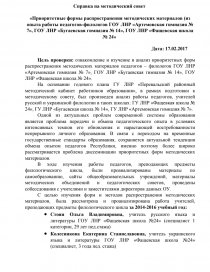 С целью изучения форм и методов распространения методических материалов, была рассмотрена и проанализирована работа учителей, преподающих предметы филологического цикла за 2014-2016 учебный год: