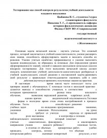 Тестирование как способ контроля результатов учебной деятельности младшего школьника