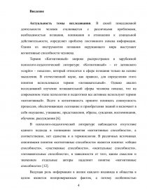 Актуальность темы исследования. В своей повседневной деятельности человек сталкивается с различными проблемами, необходимостью познания, понимания и отношения к социальной действительности, определяет проблему постоянного поиска информации. Одним из инструментов познания окружающего мира выступают когнитивные способности человека.