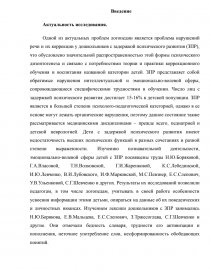 Одной из актуальных проблем логопедии является проблема нарушений речи и их коррекции у дошкольников с задержкой психического развития (ЗПР), что обусловлено значительной распространенностью этой формы психического дизонтогенеза и связано с потребностями теории и практики коррекционного обучения и воспитания названной категории детей. ЗПР представляет собой обратимые нарушения интеллектуальной и эмоционально-волевой сферы, сопровождающиеся специфическими трудностями в обучении. Число лиц с задержкой психического развития достигает 15-16% в детской популяции. ЗПР является в большей степени психолого-педагогической категорией, однако в ее основе могут лежать органические нарушения, поэтому данное состояние также рассматривается медицинскими дисциплинами – прежде всего, педиатрией и детской неврологией. Дети с задержкой психического развития имеют недостаточность высших психических функций в разных сочетаниях и разной степени выраженности. Изучению познавательной деятельности, эмоционально-волевой сферы детей с ЗПР посвящены труды Н.Ю.Боряковой, Г.А.Власовой, Т.Н.Волковской, Г.И.Жаренковой, К.С.Лебединской, И.Ю.Левченко, В.И.Лубовского, И.Ф.Марковской, М.С.Певзнер, Е.С.Слепович, У.В.Ульенковой, С.Г.Шевченко и других. Результаты их исследований позволили педагогам, в том числе логопедам, учитывать в своей работе особенности усвоения информации этими детьми, опираться на данные об их поведенческих и личностных нюансах. Изучением лексики дошкольников с ЗПР занимались Н.Ю.Борякова, Е.В.Мальцева, Е.С.Слепович, З.Тржесоглава, С.Г.Шевченко и другие. Они отмечали бедность словаря, трудности его активизации и пополнения, неточное употребление слов, несформированность обобщающих понятий.
