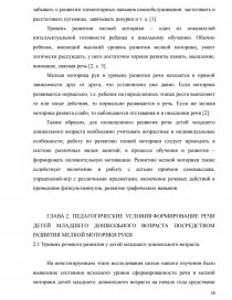 ГЛАВА 2 ПЕДАГОГИЧЕСКИЕ УСЛОВИЯ ФОРМИРОВАНИЯ РЕЧИ ДЕТЕЙ МЛАДШЕГО ДОШКОЛЬНОГО ВОЗРАСТА ПОСРЕДСТВОМ РАЗВИТИЯ МЕЛКОЙ МОТОРИКИ РУКИ………………………………..….19
