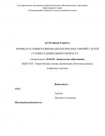 ФОРМЫ И УСЛОВИЯ РАЗВИТИЯ ДИАЛОГИЧЕСКИХ УМЕНИЙ У ДЕТЕЙ СТАРШЕГО ДОШКОЛЬНОГО ВОЗРАСТА