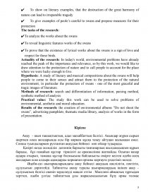 Зерттеу нысаны : әдеби-саз шығармаларындағы аққу бейнесі, аққудың киелілігі, тазалығы, сұлулығы