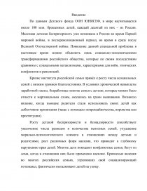 По данным Детского фонда ООН ЮНИСЕФ, в мире насчитывается около 100 млн. брошенных детей, каждый десятый из них – из России. Массовая детская беспризорность уже возникала в России во время Первой мировой войны, в послереволюционный период, во время и сразу после Великой Отечественной войны. Появление данной социальной проблемы в настоящее время можно объяснить лишь социально-экономическими трансформациями российского общества, которые по своим последствиям сравнимы с социальными катаклизмами, характерными для войн, этнических конфликтов и революций.