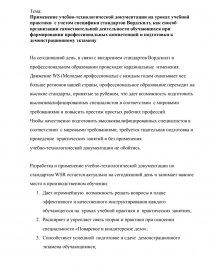 Применение учебно-технологической документации на уроках учебной практики с учетом специфики стандартов Вордскилз, как способ организац