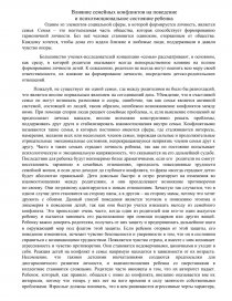 Влияние семейных конфликтов на поведение и психоэмоциональное состояние ребенка