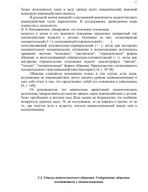 Вторая глава курсовой работы посвящена изучению педагогического взаимодействия в дошкольном учреждении. Показаны характеристики стилей педагогических взаимодействий, т.е. стилей общения, функции воспитателя, а также раскрыта структура педагогического взаимодействия. Было рассмотрено, как может влиять оценка и общение педагога на самооценку дошкольника. Большое внимание уделялось особенностям содержания общения воспитателя и дошкольника.