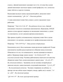 Как показало наше исследование, в современной русской и арабской культурах общения комплименты о внешности занимают значимое место. При этом русские чаще высказывают общее замечание о внешнем виде своего собеседника. Например: (пример на русском)