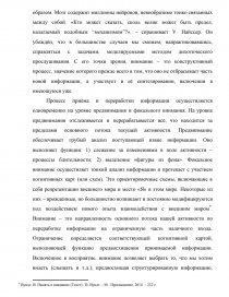 17 | А. Трейсман, 1969, 1987 | Внимание есть сложный процесс анализа и отбора информации: начинается перцептивным фильтром, расположенным между сигналом и вербальным анализом информации, и регулирует «мощность» сообщения; окончательный отбор информации осуществляется по семантическим признакам. |