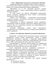 Тема: «Образование как результат воспитания и обучения»