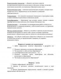 Воспитание | Относительно осмысленный и целенаправленный рост человека в соответствии с целями, в которых этот рост реализуется. Главный результат воспитания – способность и готовность человека к процессу самовоспитания. |