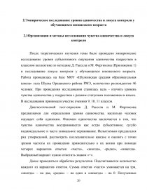 2.1Организация и методы исследования чувства одиночества и локуса контроля 20