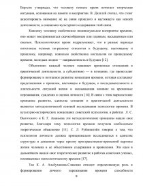 Исследование времени является все более актуальным в современной психологии. Это связано с тем, что психологическое время выполняет существенную функцию в регуляции сознания и поведения, выступает важной детерминантой самоосуществления человека. Возрастание темпов жизни, ускорение общественных преобразований актуализируют необходимость нового научного понимания того, как человек осмысливает и воспринимает время собственной жизни, и как результаты этого переживания влияют на жизненный выбор, организацию и осуществление деятельности. Именно поэтому изучение проблемы времени привлекает внимание как отечественных, так и зарубежных авторов.