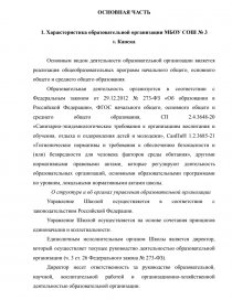- Дать общую характеристику образовательного учреждения (отобразить наименование, цель деятельности организации, направления работы; нормативно-правовую база: основные нормативные документы, регламентирующие деятельность образовательной организации; образовательную среду: материально-техническое и информационное обеспечение; количественные и качественные характеристики и социальные, психолого-педагогические и когнитивные особенности контингента образовательной организации; учебно-методическое и материально-техническое обеспечение организации;