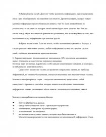 Итак, целью данной работы является рассмотрение основных методов запоминания и выделение из них наиболее успешных, которые значительно могут облегчить работу с информацией и помогут запомнить её надолго.