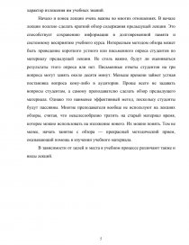 Структура лекции в основном складывается из трех элементов: вступления, основной части и заключения. Во вступлении кратко формулируется тема, сообщается план и задачи, перечисляется литература к лекции, показывается связь с предыдущим учебным материалом, обозначается теоретическая и практическая значимость темы. Цели основной части лекции — раскрытие содержания темы, изложение и конкретизация ключевых идей и положений, анализ явлений, связей, отношений. В заключительной части лекции подводится итог, кратко повторяются и обобщаются основные положения, формулируются выводы и даются рекомендации по выполнению самостоятельной работы. Известно, что слушателями активно удерживается внимание в течение 15–20 минут, затем целесообразно давать им возможность включить полученные новые знания в существующую систему знаний путем формулирования наводящих вопросов, поиска ответов на них в малых группах.