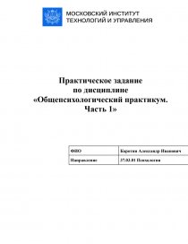 Практическое задание по дисциплине: Общепсихологический практикум. Часть 1