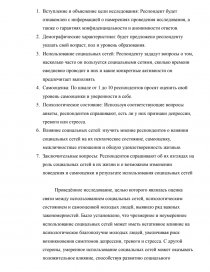 - Заключительные вопросы: Респондентов спрашивают об их взглядах на роль социальных сетей в их жизни и о возможном изменении поведения и самооценки в результате использования социальных сетей