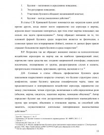 Особое место среди проявлений агрессии в подростковой среде занимает буллинг (от англ. bully – хулиган, задира, грубиян). Проблема буллинга среди подростков весьма актуальна, однако в России она недостаточно изучена. В отечественной науке тематическое исследование данной проблемы еще только начинается и представлено работами А.А. Бoчавeр, О.Л. Глазман, Т.Г. Гришиной, М.М. Кравцовой, С.В. Кривцовой, Ю.Л. Макаровой, О.С. Маркиной, А.А. Нестеровой, В.Р. Петросянц, В.С. Собкина, К.Д. Хлoмoва и др.