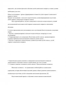 Предмет исследования - психолого-педагогические условия формирования подготовки детей старшего дошкольного возраста к школе