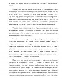 Как уже было отмечено, в первую очередь для того, чтобы организовать убеждающую коммуникацию человеку необходимо завоевать доверие, так как скорее всего будет наблюдаться недостаток доверия, который будет серьёзным барьером на пути убеждения. Если говорящий не сможет развеять сомнения его аудитории касательно того, можно ли ему доверять, до тогда без этой основы не может быть выстроена эффективная убеждающая коммуникация. Недоверие к спикеру – это довольно естественная реакция.