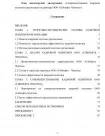 Тема магистерской диссертации: «Совершенствование кадровой политики организации (на примере ООО «Сибнефть-Чукотка»)