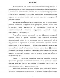 Динамичное изменение условий внешней среды предъявляет высокие требования к управлению организациями и, особенно, к кадровой политике в организации. От успешности решения этой задачи зависит эффективность функционирования организации и, в конечном итоге, ее жизнеспособность.
