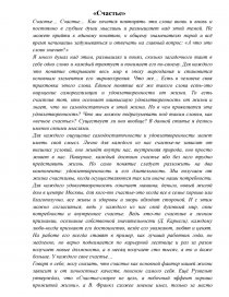 Счастье… Счастье… Как хочется повторять эти слова вновь и вновь и постоянно в глубине души мыслишь и размышляет над этой темой. Не может прийти к единому понятию, к общему знаменателю порой и всё время начинаешь задумываться и отвечать на главный вопрос: «А что это слово значит?»