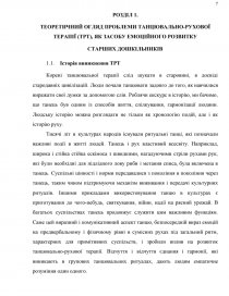 РОЗДІЛ 1. | ТЕОРЕТИЧНИЙ ОГЛЯД ТАНЦЮВАЛЬНО-РУХОВОЇ ТЕРАПІЇ ( ТРТ), ЯК ЗАСОБУ ЕМОЦІЙНОГО РОЗВИТКУ ДІТЕЙ СТАРШОГО ДОШКІЛЬНОГО ВІКУ…………………………………………………………..6 | |